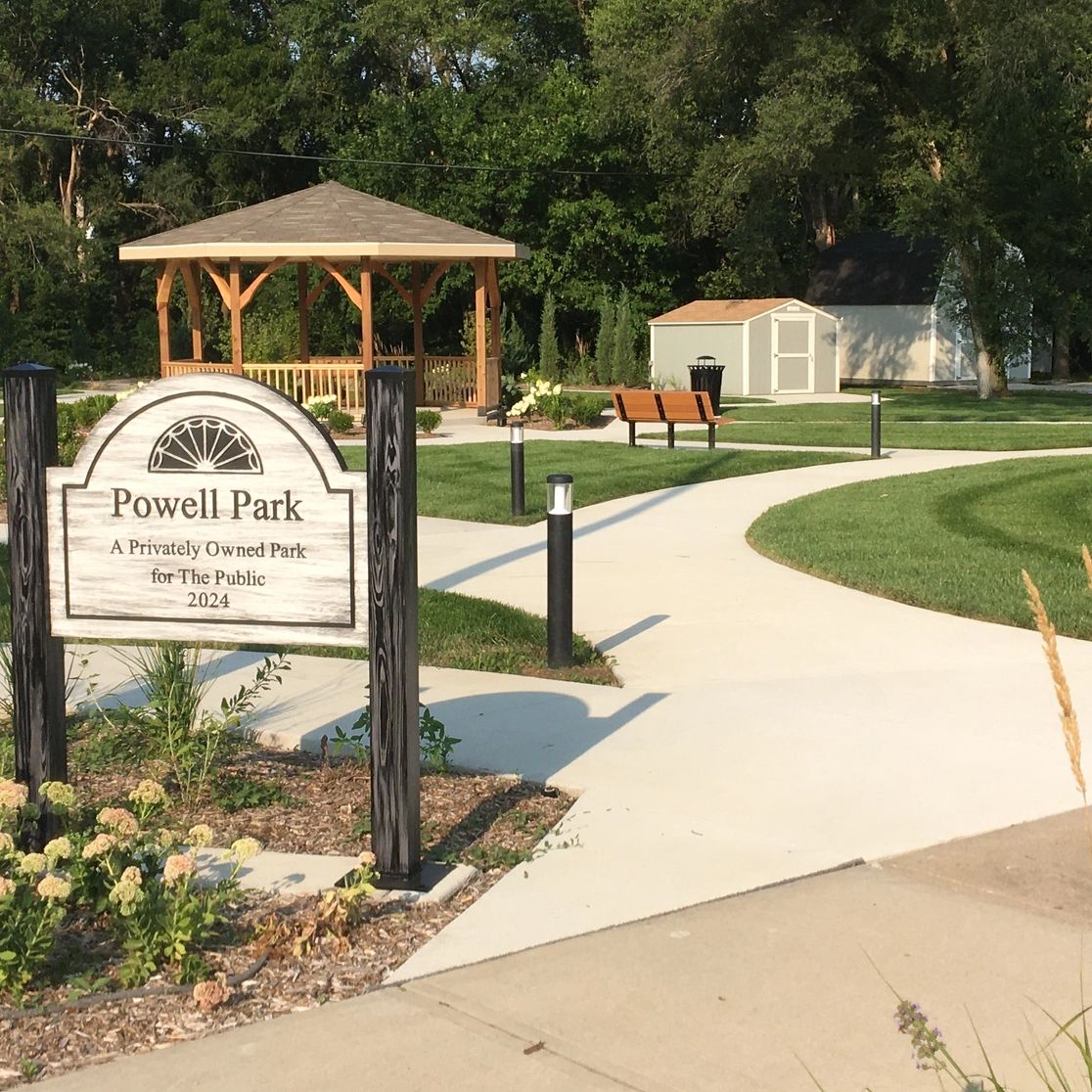 Powell Park is a privately owned, public park with gardens, walking paths, gazebo, and labyrinth.